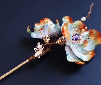 Vocabulary Velvet Flower - 绒花 (rónghuā) - a realistically made flower made artificially from silk threads and copper wire. Palace Flower - 宫花 (gōng huā) - another way to call ronghua with the rise in popularities of ronghua to females in the palace. Untwisted Silks - 无捻蚕丝 (wú niǎn cánsī) - when it comes to silk threads, depending on the type and material of the threads, one single thread can be made up of thinner threads twisted together. Untwisted silk thread means there are no smaller twisted threads. You can directly skip to the brushing steps in ronghua making process. Hunan Embroidery Thread - 湘绣线 (xiāngxiù xiàn) - another type of thread used in ronghua making. Suzhou Embroidery Thread - 苏绣线 (sūxiù xiàn) - another type of thread used in ronghua making. History 绒花, rónghuā, an artificial handcraft head accessories made from materials such as silks and coppers. It existed since the Qin Dynasty. There are many known “brands” of ronghuas, such as Nanjing Ronghua. In the Tang era, Wu Zetian listed Nanjing Ronghua as a royal tribute to the Yangzhou area becoming a luxury only princes and princesses can use. Eventually, Nanjing Ronghua became something that represents Nanjing but also…...