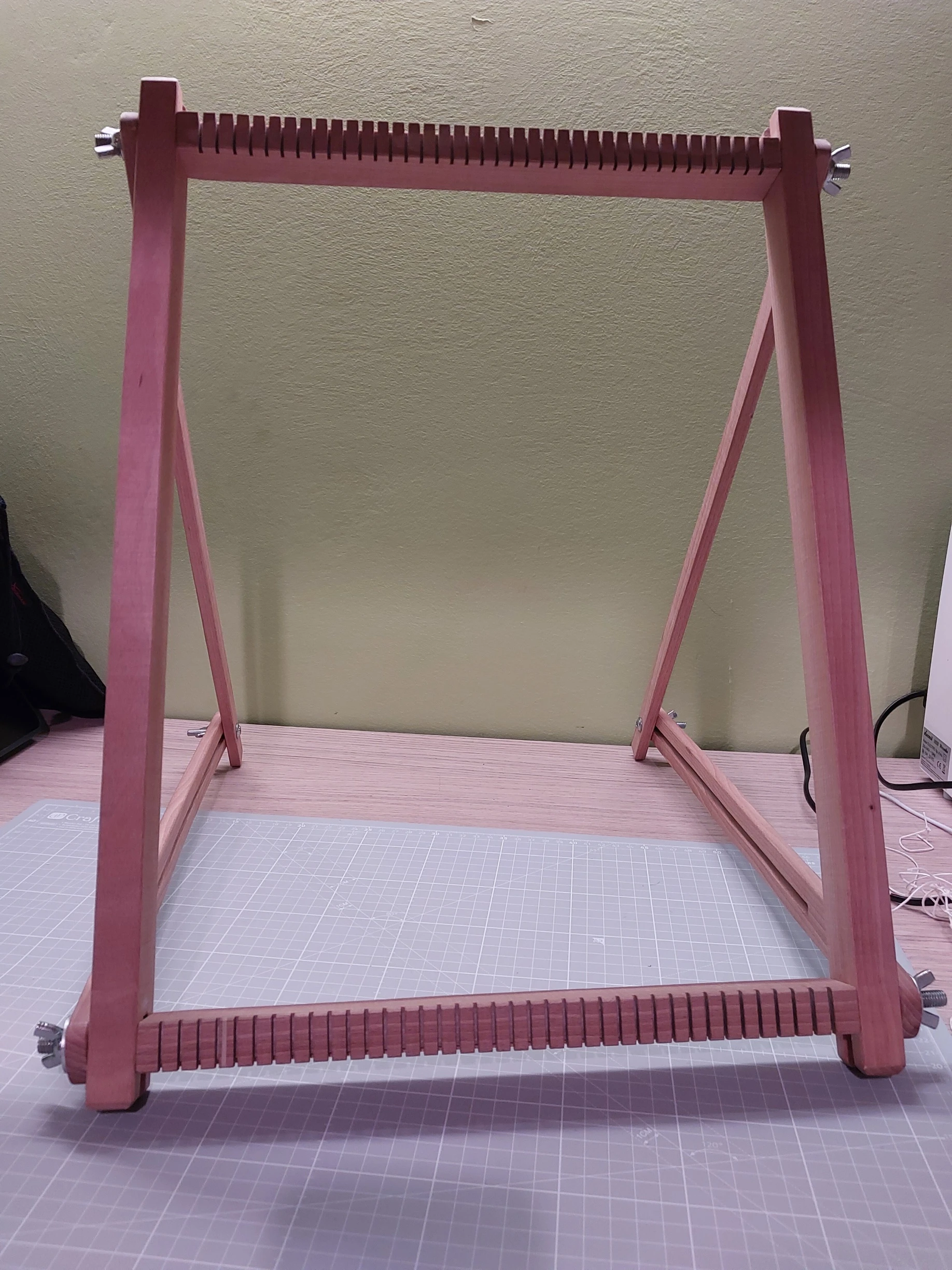 It's my first loom. I've got it 5 years ago during my summer trip. It's good but the looms made from the wooden frame with nails are good too. They can be bigger with warp being more dense. You can make really big things with these. This one is for small projects.